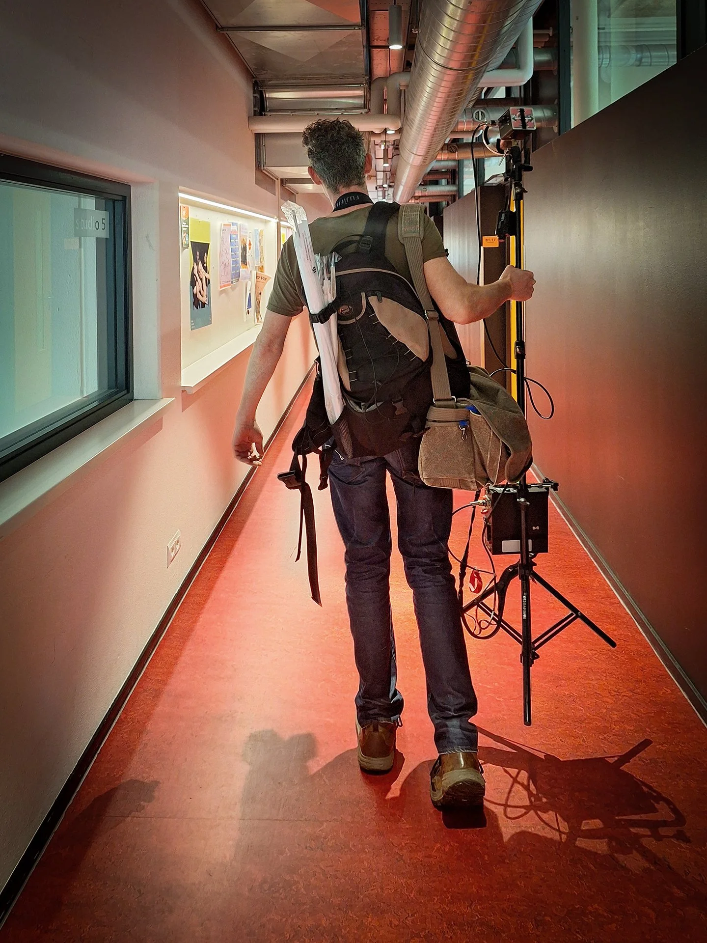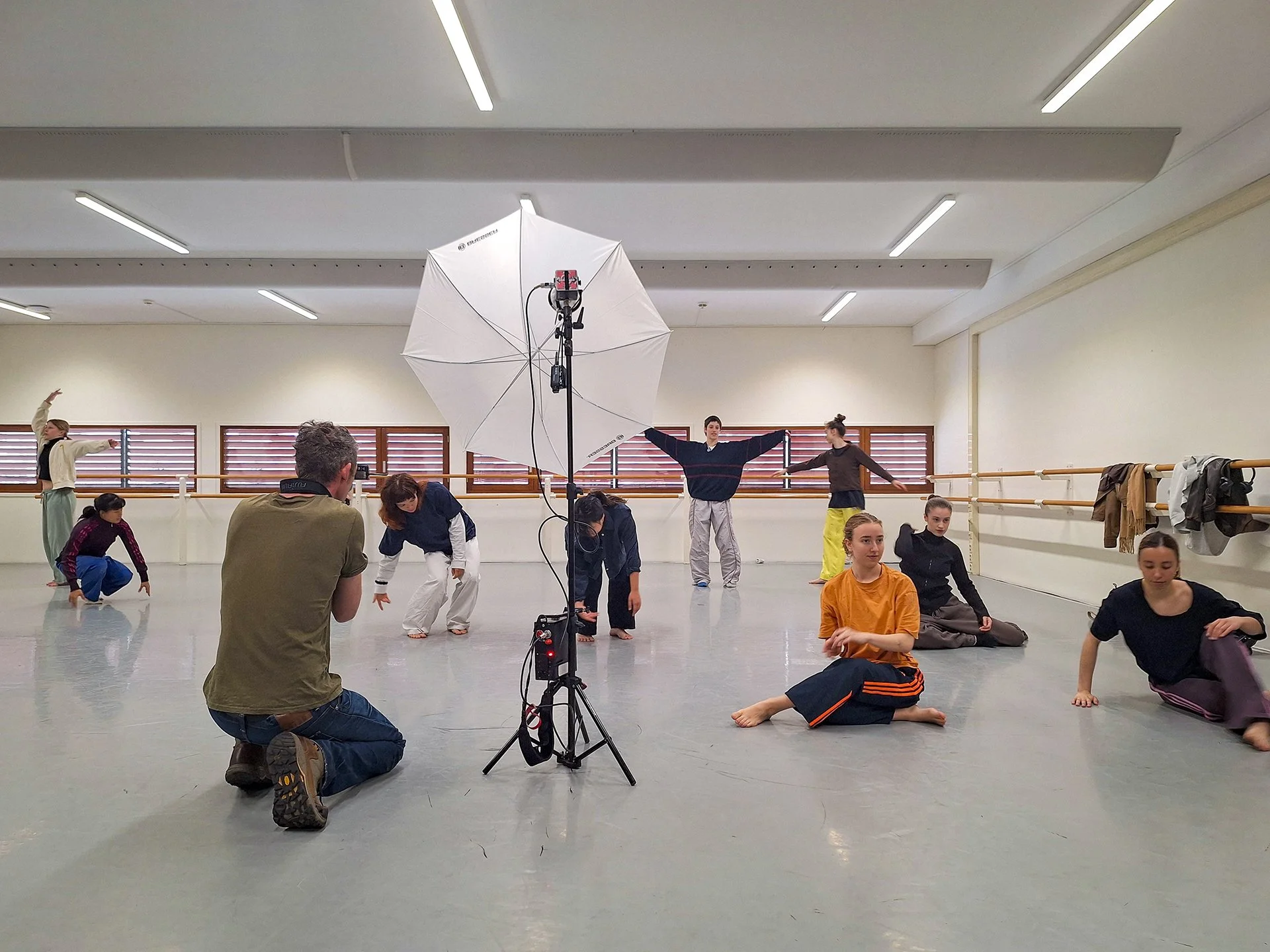 David Galjaard worked for ten months as a photographer in residence at Fontys Academy of the Arts in Tilburg. During this period, he visited the campus on multiple occasions, photographing students, lecturers, and staff during classes, rehearsals, meetings, and moments of focus. He also documented spaces, materials, and quiet, reflective moments.